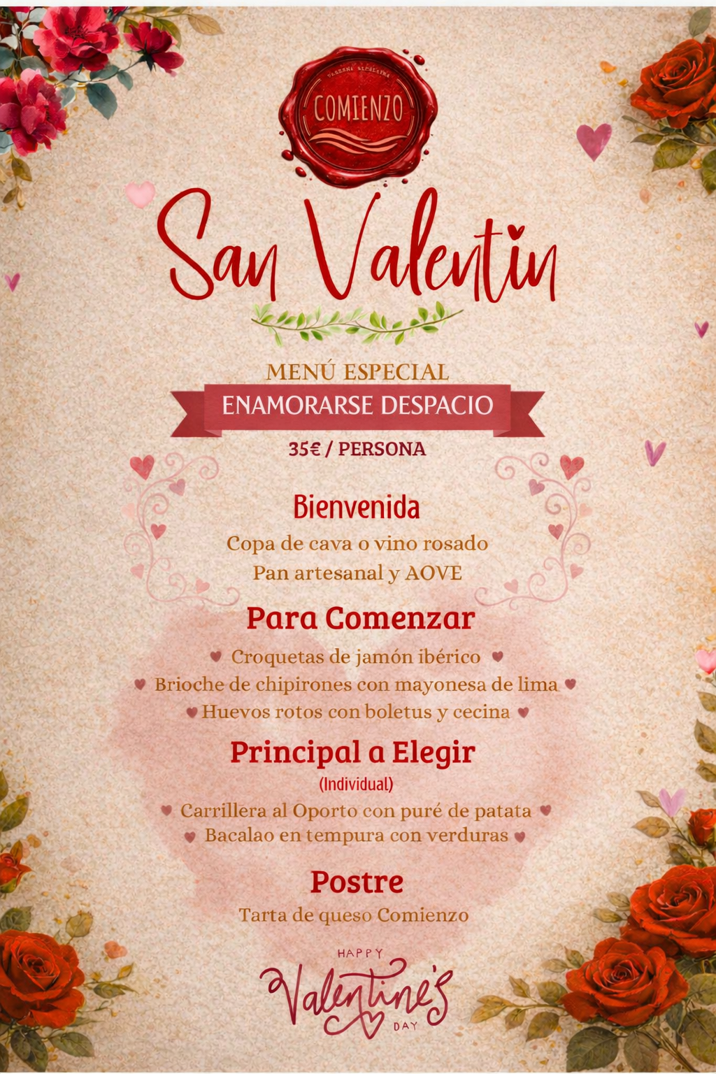 Menú San Valentin I «Enamorarse Despacio» (35 euros)